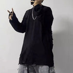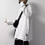 T-shirt blanc déchiré à manches longues pour hommes, adolescents, marque tendance, hip-hop, ample, personnalisé, tendance chemise décontractée [Aperçu du produit